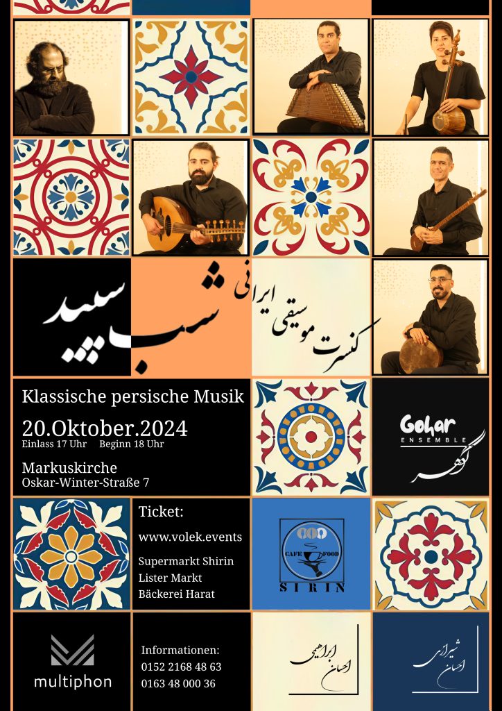 Performed with the Gohar Ensemble, led by Ehsan Ebrahimi, presenting traditional and contemporary Iranian music.